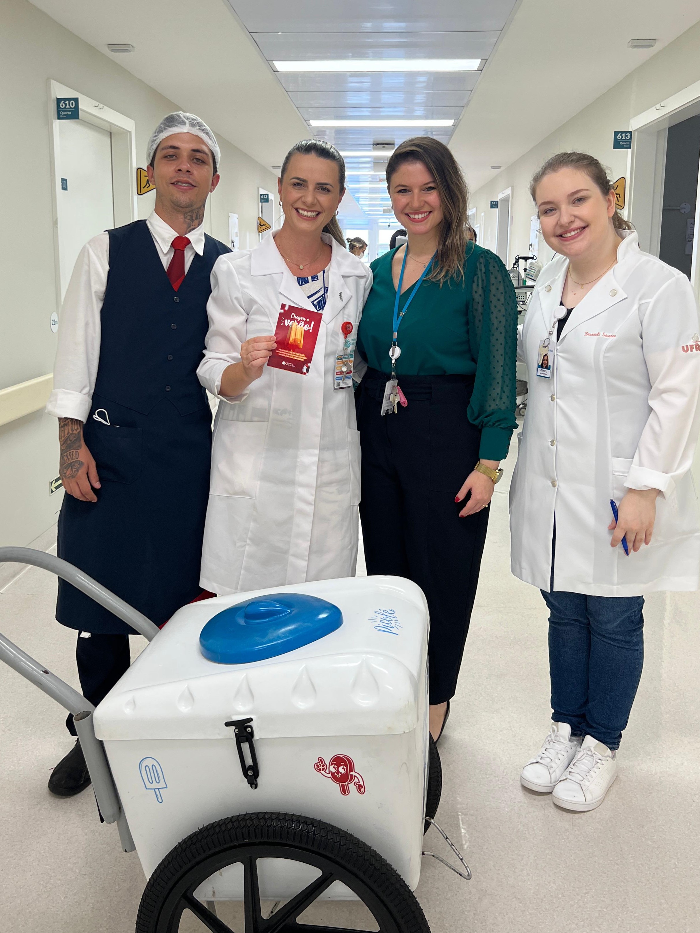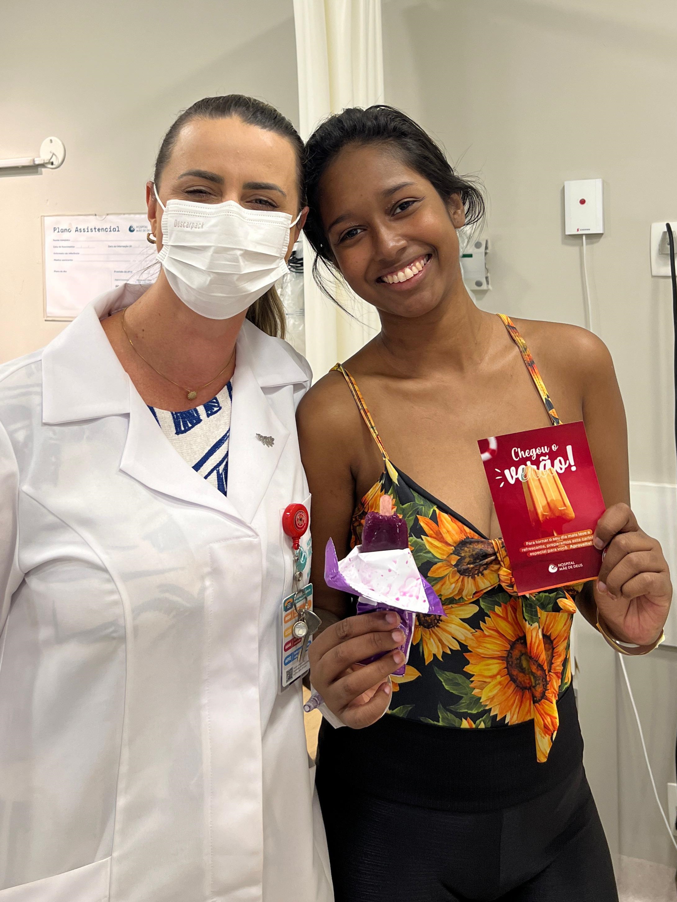 Na quinta-feira, 20 de fevereiro, a equipe de nutrição do HMD promoveu uma ação especial para proporcionar momentos de descontração e quebrar a rotina dos pacientes internados. Picolés refrescantes foram distribuídos entre os internados e seus acompanhantes como forma de gerar alívio durante os dias de calor intenso.