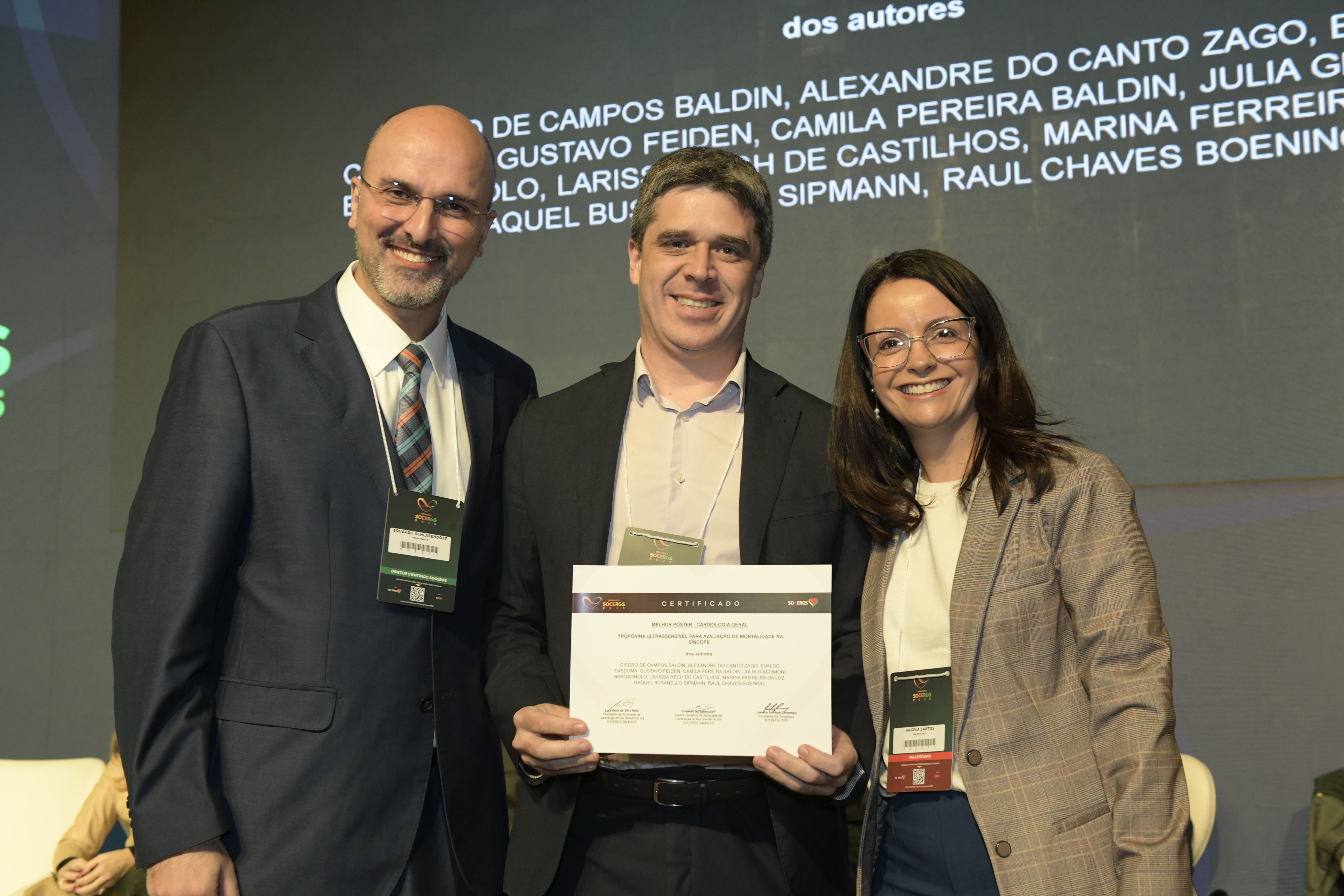 No último dia de congresso, o Dr. Cícero Baldin foi reconhecido com o prêmio de Melhor Pôster na categoria Cardiologia Geral, com o trabalho “Troponina ultrassensível para avaliação de mortalidade na síncope”.