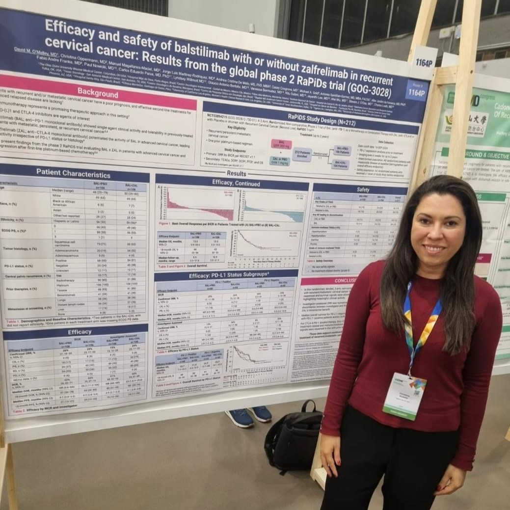 O Dr. Vinícius Lorandi acompanhou as atualizações de estudos em tumores do trato gastrointestinal e de pulmão, suas principais áreas de atuação. O destaque ficou com a Dra. Christina Oppermann que participou com a apresentação de um pôster do estudo Agenus C-750-01 (GOG-3028), no qual atua como investigadora.