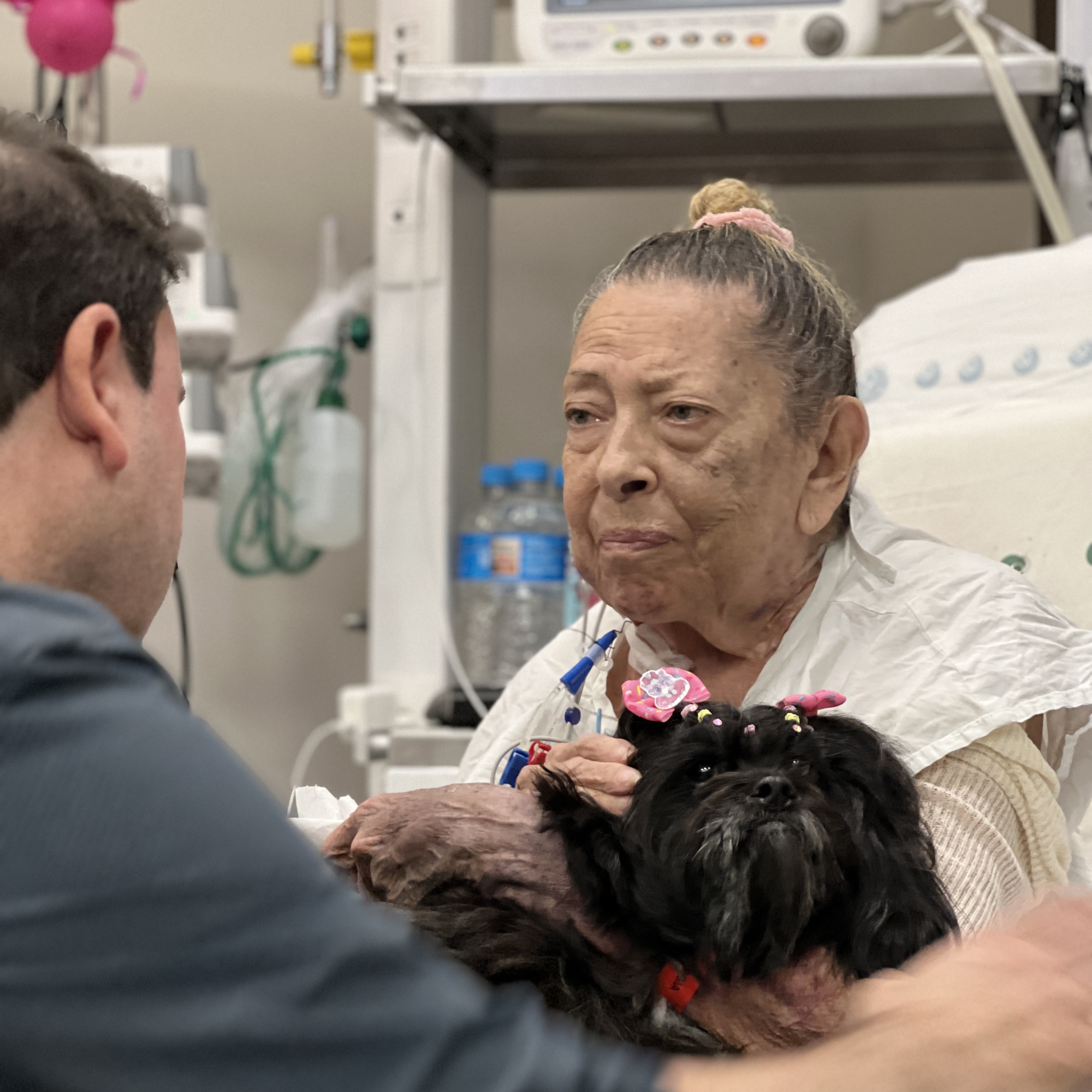Outro acontecimento tocante foi o reencontro de Francine com sua golden retriever Tequila. Francine está internada em tratamento contra o câncer, não pôde celebrar como de costume o aniversário de sua mãe, que aconteceu há algumas semanas. A partir disso, a equipe multiprofissional, em conjunto com a área de Experiência do Cliente, organizou uma pequena festa de aniversário com a presença de familiares — e da cachorrinha, que também ganhou um bolo especial, próprio para cães.