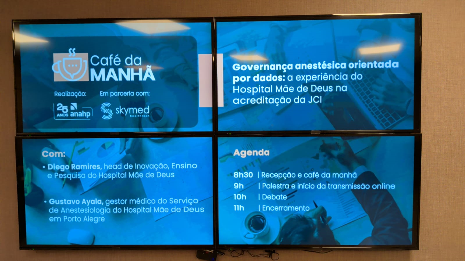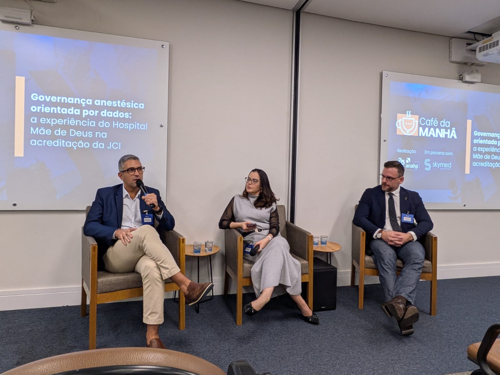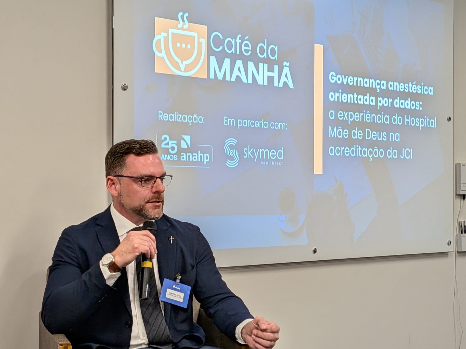 No dia 28 de abril, a ANAHP, em parceria com a SkyMed, realizou mais uma edição do Café da Manhã. O encontro trouxe como tema a governança anestésica orientada por dados, tendo como fio condutor a experiência do Hospital Mãe de Deus no processo de acreditação pela Joint Commission International (JCI). Convidados pela SkyMed, o Dr. Gustavo Ayala, Gestor do Serviço de Anestesiologia, e Diego Ramires, Head de Inovação, Ensino e Pesquisa do HMD, foram os palestrantes do evento.
